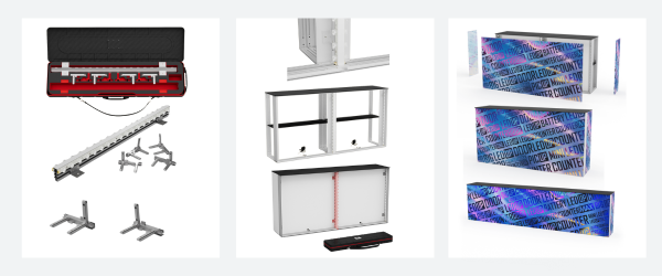 Durch die Verbindung der Module mit nur einer einzigen Frontgrafik entsteht eine nahtlose Lichtfläche, die wie eine stylische Markenbar wirkt: perfekt für große Messeflächen, Premium-Events, Produktpräsentationen oder Hospitality-Zonen, in denen Atmosphäre und Markenwirkung Hand in Hand gehen sollen.